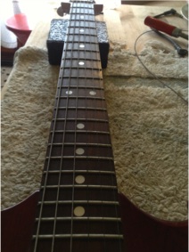 En este caso, no había más remedio que sustituir el puente por otro compatible, tanto en dimensiones como en altura. Se debe ir con cuidado con la elección del puente ya que puede modificarnos la altura de las cuerdas, impidiéndonos un buen ajuste si el diseño de la pieza no está hecho para según que arquitectura de la guitarra, por ejemplo que el cuerpo de la guitarra tenga mucha curvatura y le instalemos un puente con una altura de los caballetes de por sí alta, de tal manera que la acción de las cuerdas nos quedará irremediablemente alta sin margen de maniobra.
